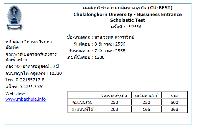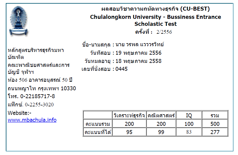 แนวข้อสอบ CU BEST